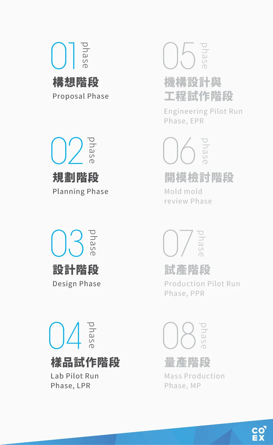 此專案客戶以募資商品為開發主軸,COEX 整合其客戶既有嬰幼兒市場通路需求,藉由參與前期市場問卷初探,鎖定市場關鍵痛點需求,透過 COEX 設計展開後發展出兩款相關產品,滿足孩童成長時期不同需求,COEX 亦協助評估後需開發成本,作為客戶後續於募資平台研發費用評估依據。